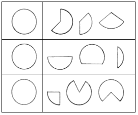 – Треугольник расположен правее квадрата, прямоугольник – правее круга, круг – правее треугольника. Изобразите цепочку фигур так, как я назвала.